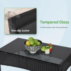 4-Piece Outdoor Wicker Patio Conversation Furniture Set for Backyard W/Coffee Table, Seat Cushions, Patio Furniture Set